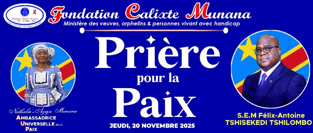 La Fondation Calixte MUNANA, sous l’égide de Nathalie -AZIZA MUNANA, Ambassadrice Universelle de la Paix, a marqué les esprits en organisant une journée mémorable alliant spiritualité et santé publique ce jeudi 20 novembre au bâtiment du 30 Juin à Lubumbashi. Cette journée du jeudi, le bâtiment du 30 Juin, majestueux symbole d’histoire et de résilience, a été métamorphosé en un sanctuaire citoyen vibrant, accueillant une marée humaine composée de veuves, d’orphelins et de fidèles de tous horizons chrétiens. Ensemble, ils ont élevé une clameur pacifique, formant un écho de prières ferventes pour la paix, la protection et la bénédiction de la Nation Congolaise sous la Présidence de Félix Antoine TSHISEKEDI.